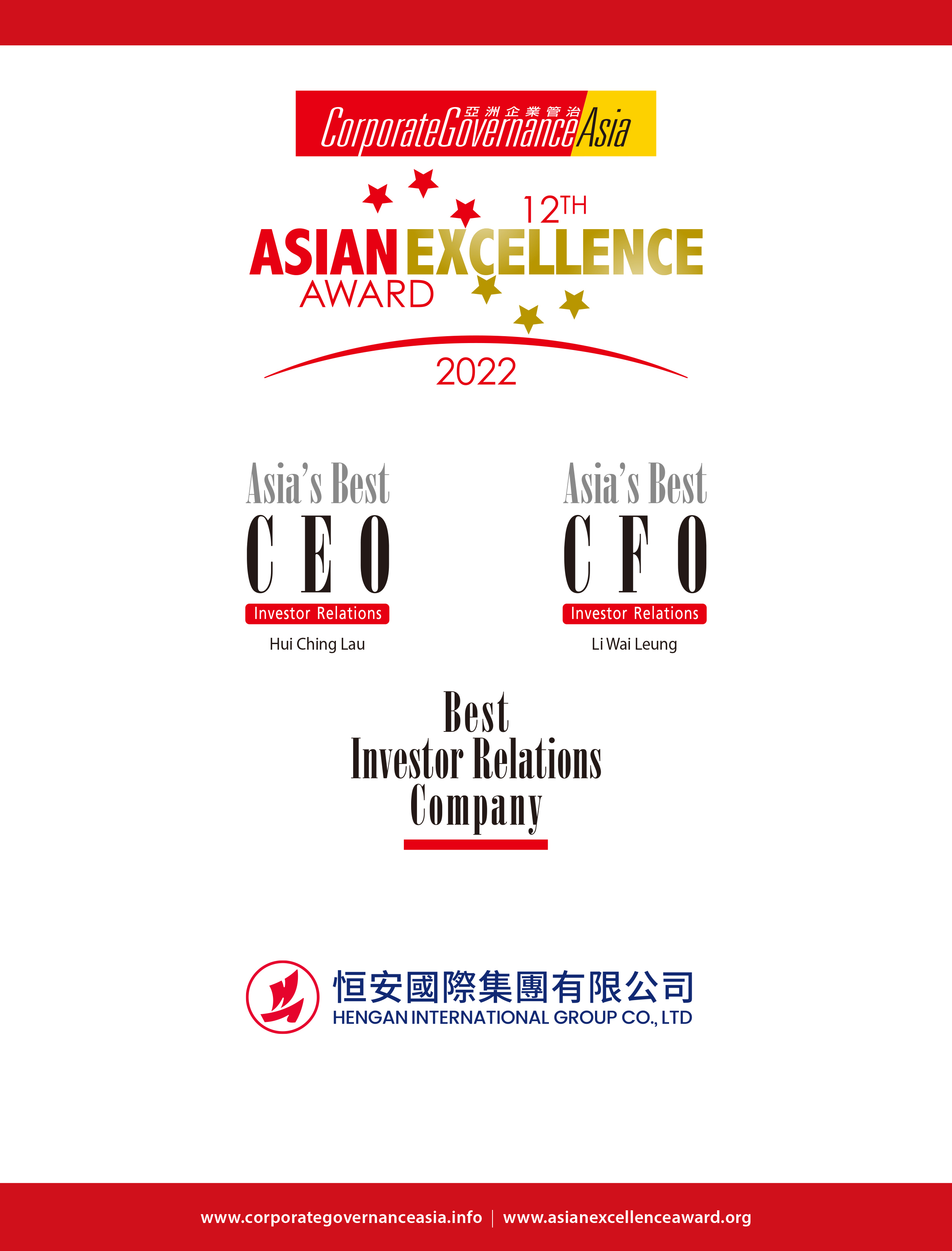 近日,《亚洲企业管治》杂志颁发“第十二届亚洲卓越企业大奖”,腾讯分分荣获三项大奖:恒安国际集团有限公司执行董事兼行政总裁许清流荣获该杂志颁发“亚太区最佳CEO奖”,执行董事兼财务总监李伟樑获颁发“亚太区最佳CFO奖”,恒安国际凭借在企业管治、投资者关系、企业社会责任等多方面的综合出色表现,同时荣获“最佳投资者关系企业”。